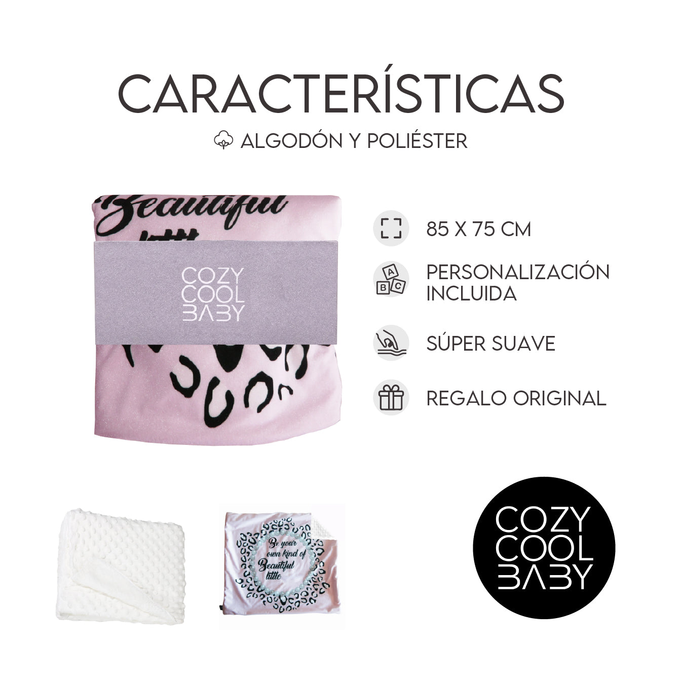 Coozy Cool Baby tiene cobijas con una textura deliciosa; a mi bebé le encanta. Además, me las personalizan como yo las necesito.