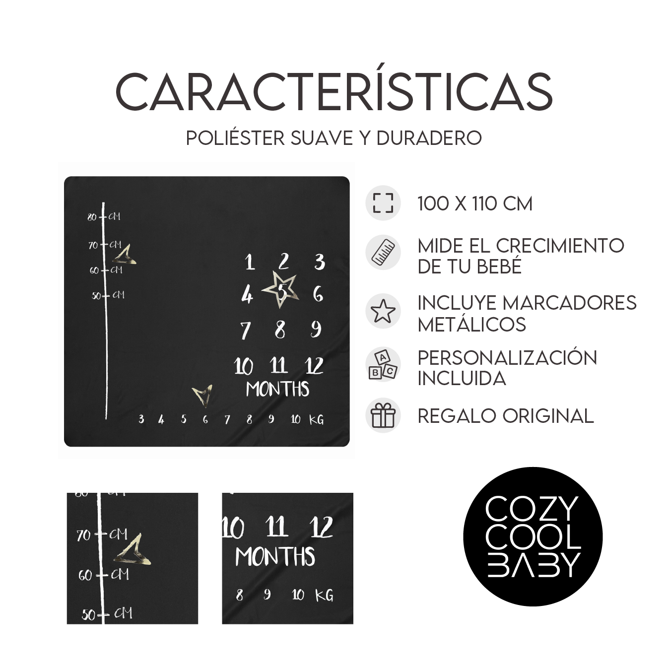 Nuestra Manta de Cumplemes Personalizada es perfecta para medir el crecimiento de tu bebé y registrar sus cambios mes a mes. Personalizada con su nombre y con marcadores metálicos incluidos, esta manta convierte cada sesión de fotos en un recuerdo inolvidable.