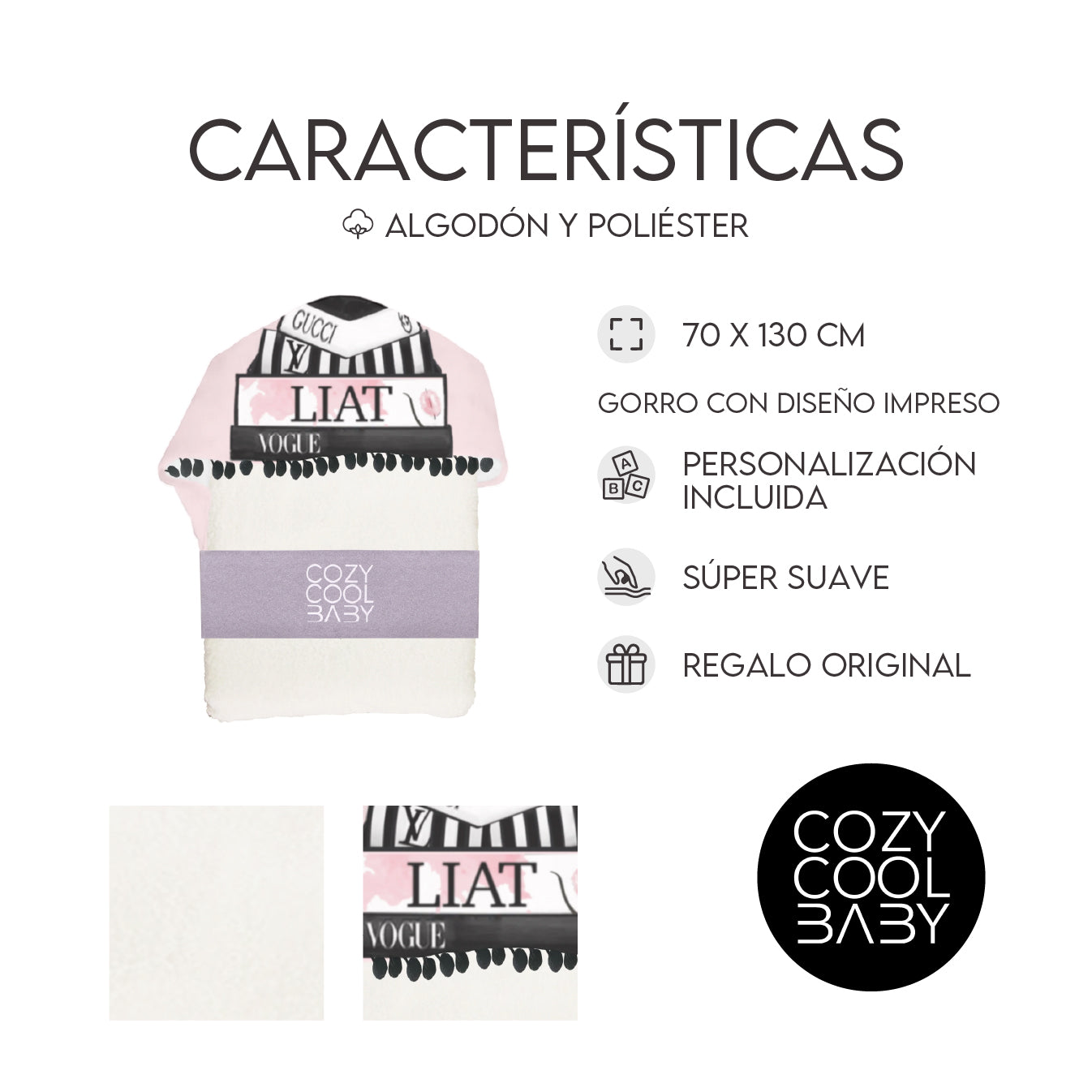 Nuestra Toalla de Baño Grande Personalizada es ideal para mantener a tu peque abrigado y cómodo después del baño. Con un gorro de diseño impreso y personalización con su nombre, esta toalla será su favorita desde el primer uso.